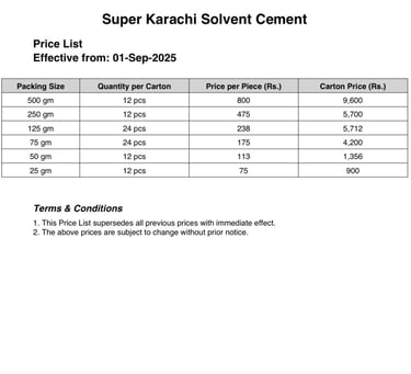 SUPER KARACHI SOLVENT CEMENT RATE LIST